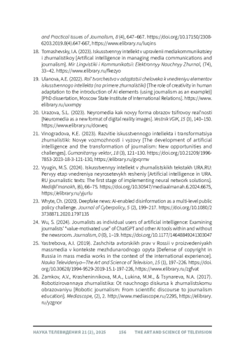 15. Томашевский, И.А. (2023). Искусственный интеллект в управлении медиакоммуникациями и журналистикой. Мир лингвистики и коммуникации: электронный научный журнал, (74), 33–42. EDN: FKEZYO