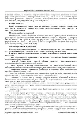 Статья: ФОРМИРОВАНИЕ МОДЕЛИ МЕНЕДЖМЕНТА М4.0 КАК НОВОЙ УПРАВЛЕНЧЕСКОЙ ПАРАДИГМЫ ПОСТИНДУСТРИАЛЬНОЙ ЭКОНОМИКИ (2025)