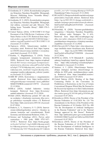 2. AI-wielding tech firms are giving a new shape to modern warfare [рус. Технологические компании, использующие искусственный интеллект, придают новую форму современной войне]. The Economis. Feb 16. 2023. URL: https://www.economist.com/business/2023/02/16/aiwielding-tech-firms-are-giving-a-new-shape-tomodern-warfare (дата обращения: 25.12.2024).