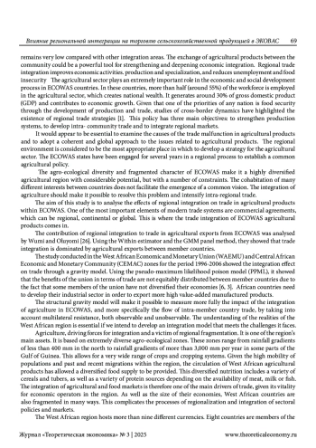 23. Vigninou, G. (2017). Intégration Régionale et Commerce Agricole Bilatéral en Afrique de L’Ouest // African Development Review. Vol. 29, № S2. Р. 147-162.