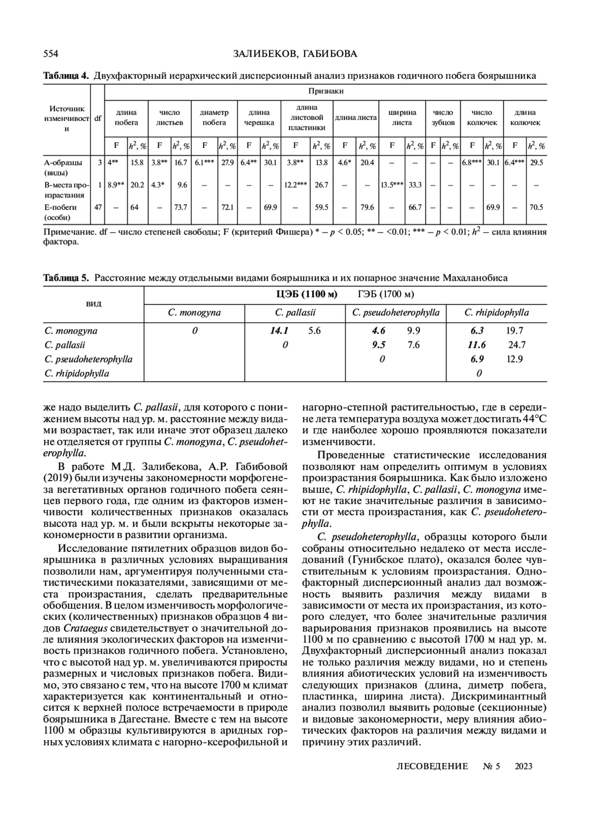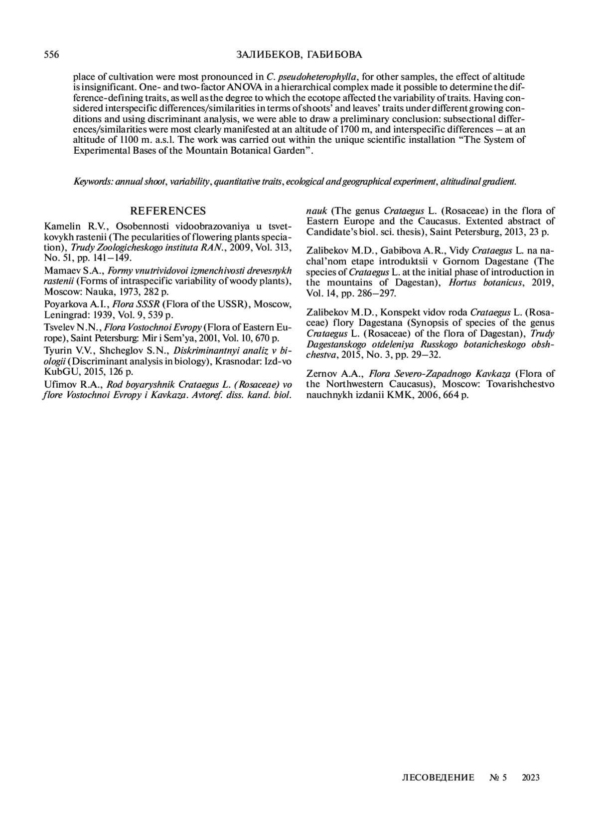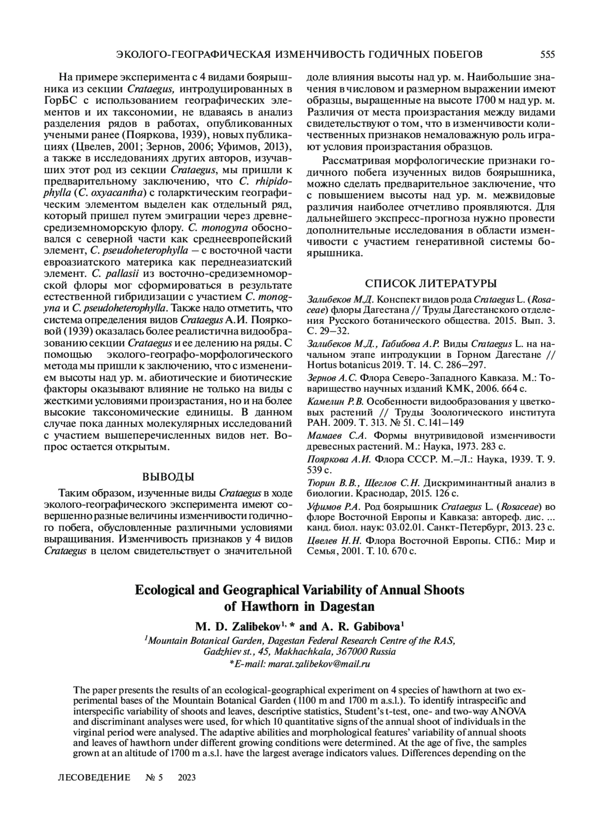 Статья: ЭКОЛОГО-ГЕОГРАФИЧЕСКАЯ ИЗМЕНЧИВОСТЬ ГОДИЧНЫХ ПОБЕГОВ БОЯРЫШНИКОВ В ДАГЕСТАНЕ (2023)