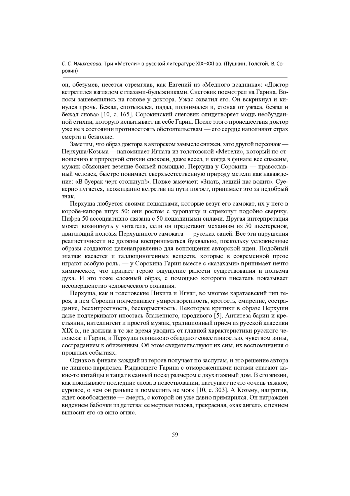 5. Завьялова Е. Е. Интеллигент и Божий человек из будущего: о главных героях повести В. Сорокина “Метель” // Вестник Томского государственного университета. 2015. № 397. С. 19-23. URL: https://joumals.tsu.ru/uploads/import/1284/files/397_019.pdf (дата обращения: 29.11.2024). Текст: электронный. EDN: UIBAEB