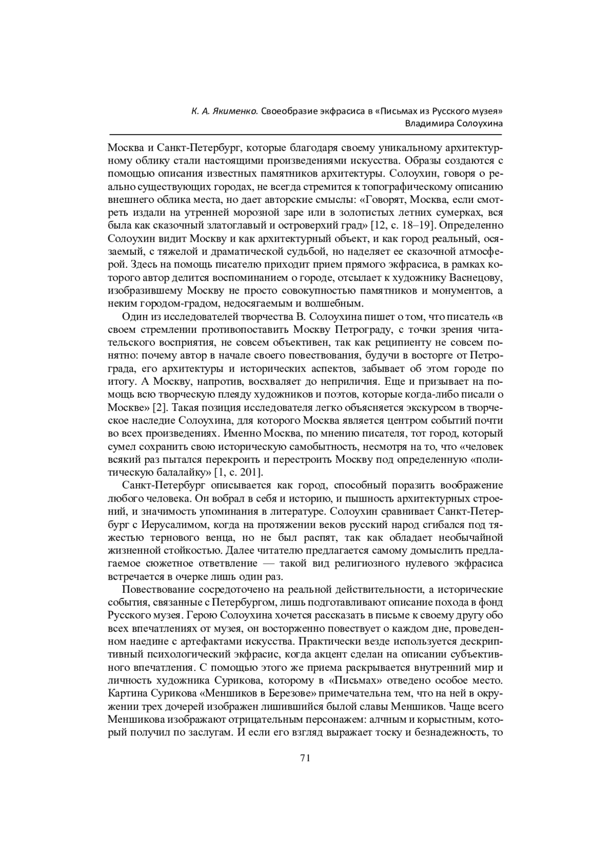 15. Яценко Е. А. Любите живопись, поэты: экфрасис как художественно-мировоззренческая модель // Вопросы философии. 2011. Вып. 11. С. 23-24. Текст: непосредственный.