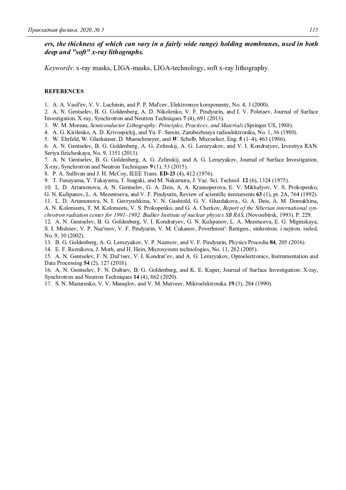 16. A. N. Gentselev, F. N. Dultsev, B. G. Goldenberg, and K. E. Kuper, Journal of Surface Investigation: X-ray, Synchrotron and Neutron Techniques 14 (4), 862 (2020).