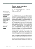 Введение: В России промышленным способом производится 7-8 млн. т картофеля в год и дальнейший рост производства данной культуры в ближайшее время будет происходить в основном за счет развития сектора переработки. Наиболее востребованные картофелепродукты - фри, чипсы, сухое картофельное пюре, быстрозамороженный и вакуумированный картофель. Их качество обусловлено главным образом сортовыми особенностями картофеля, проявляющимися в содержании в клубнях крахмала и редуцирующих сахаров. Однако группировка картофелепродуктов в зависимости от биохимического состава клубней, равно как и оценка пригодности сортов на те или иные виды переработки до сих пор проводилась лишь интуитивно и исходя из общих соображений, т. е. без строгого математического обоснования.