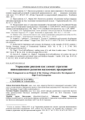 В статье рассматривается управление рисками в качестве элемента при формировании стратегии инновационного развития наукоемких предприятий. Представлены различные варианты понятия «риски», дано их авторское определение. Предложено создание специального структурного подразделения по управлению рисками в качестве дополнения к формируемой стратегии инновационного развития. Разработана блок-схема прохождения согласования бизнес-процессов через данное структурное подразделение. Показано распределение ответственности каждого участвующего звена, задействованного в предлагаемой блок-схеме. Дано обоснование целесообразности включения управления рисками в стратегию инновационного развития в качестве одного из элементов