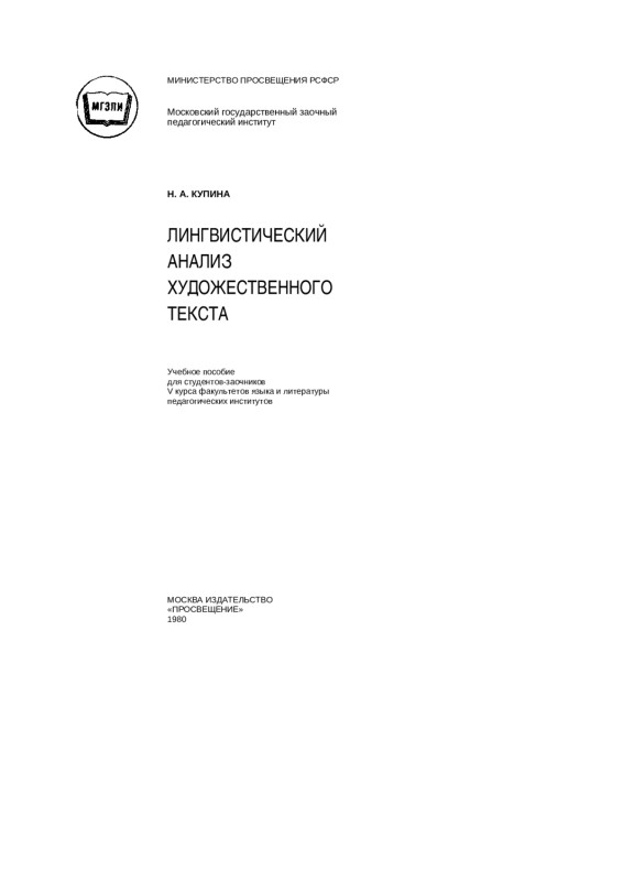 В пособии рассматривается лингвистический анализ текста. Его цель — выявление системы языковых средств, с помощью которых передается идейно-тематическое и эстетическое содержание текста, выявление зависимости отбора языковых средств от прогнозируемого автором эффекта речевого воздействия.