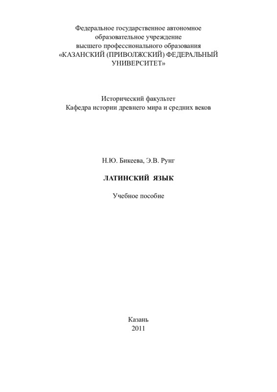 Латинский язык: Учебное пособие / Н.Ю. Бикеева, Э.В. Рунг. – Казань: Казанский (Приволжский) федеральный университет, 2011. – 151 с.