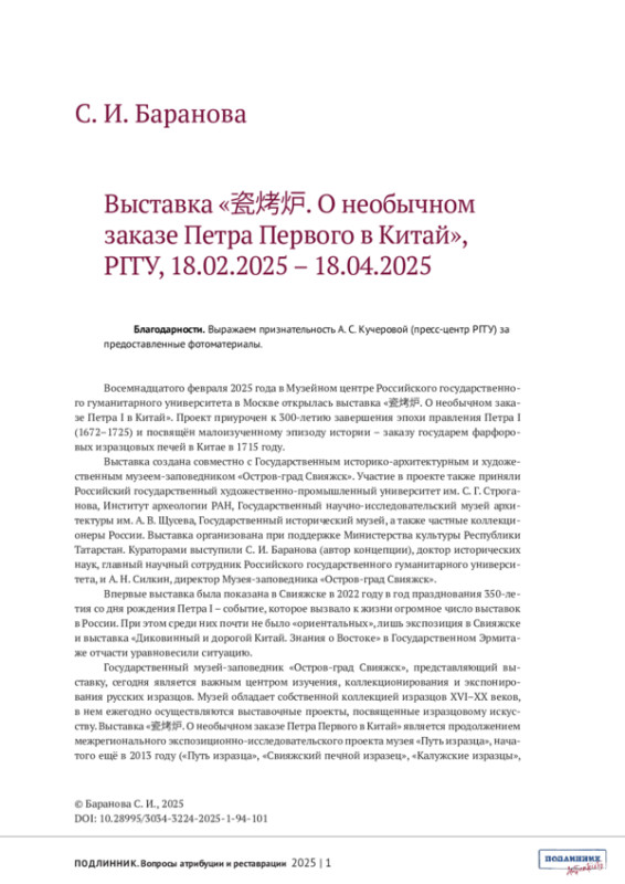 Статья: ВЫСТАВКА «瓷烤炉. О НЕОБЫЧНОМ ЗАКАЗЕ ПЕТРА ПЕРВОГО В КИТАЙ», РГГУ, 18.02.2025 - 18.04.2025