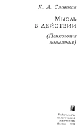 В этой книге ведется разговор о сложной и интересной науке, призванной раскрыть тонкий механизм мыслительной деятельности человека, — о психологии мышления. Ее автор, старший научный сотрудник Института философии АН СССР, знакомит читателя с различными точками зрения на природу мышления, вводит его в лабораторию исследования человеческой мысли, рассказывает о том, как преодолеваются трудности, вслающие здесь перед учеными. Книга выходит в серии «Над чем работают, о чем спорят философы», назначение которой — дать читателю представление о новых идеях, спорных проблемах философии, этики, психологии и т. п.