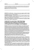 Статья: ПОВОРОТ НА ВОСТОК: ПЕРСПЕКТИВЫ РАЗВИТИЯ РОССИЙСКО-КИТАЙСКИХ ОТНОШЕНИЙ ВО ВЗГЛЯДАХ МОЛОДЕЖИ