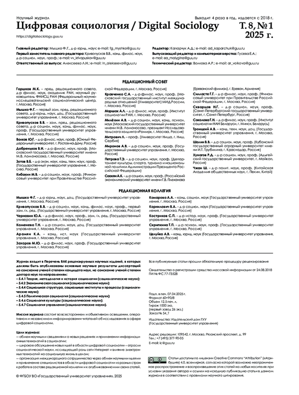 Цель настоящего исследования – выявить и обозначить ключевые векторы системных изменений социальных коммуникаций в условиях цифровой платформизации и создания метавселенных помощи человеку. Основными методами эмпирических исследований стали анализ документальных источников, контент-анализ, сравнительный анализ данных отчетов и статистики Министерства цифрового развития, связи и массовых коммуникаций Российской Федерации о цифровизации портала «Госуслуги», отчетов Global Digital, GSMA Intelligence, «Сбер» и др., вторичный анализ итогов исследований Всероссийского центра изучения общественного мнения. Основные результаты связаны с анализом динамики трансформации социальных коммуникаций в условиях цифровой платформизации. Установлено, что возможности мгновенных социальных интеракций сформировали феномен непрерывности темпоральной вовлеченности аудитории в глобальные информационные потоки. Отмечены опасности и риски, которые связаны с потерей приватности, защиты личной информации, утратой конфиденциальности данных, феноменами цифрового разобщения и цифрового неравенства. Сделан вывод о происходящих изменениях в повседневных практиках социальных коммуникаций и трансформации жизненного мира, проявляющихся в государственном управлении, экономике, социальной работе, медицине, реабилитации, сетевых социальных коммуникациях и иных сферах.