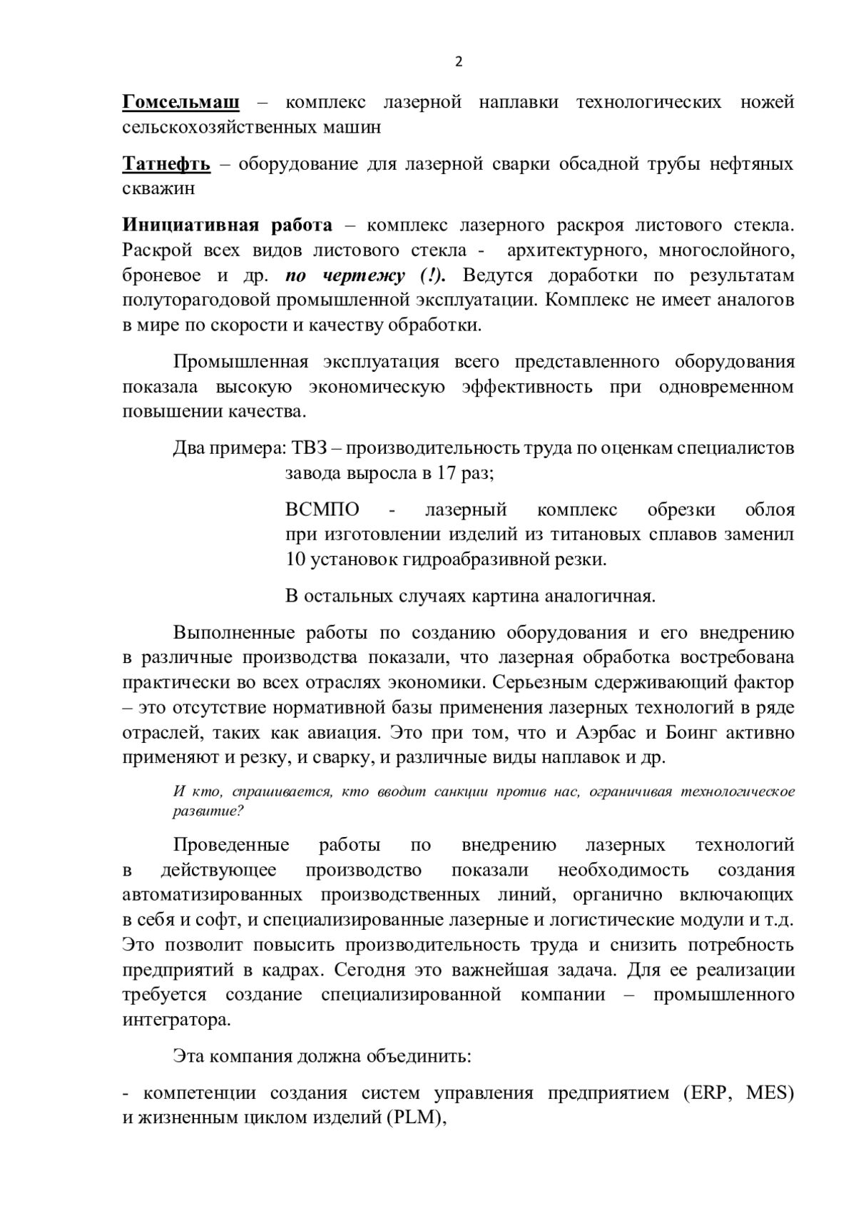 О достигнутом уровне и перспективных направлениях развития лазерного машиностроения в России. Проблемные вопросы